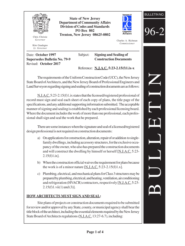 Get the free Bulletin No. 96-2: Signing and Sealing of Construction Documents