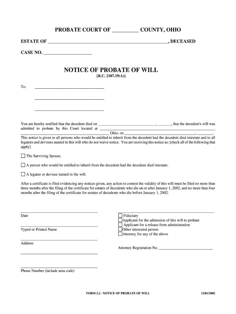 Get the free NOTICE OF PROBATE OF WILL - supremecourt ohio
