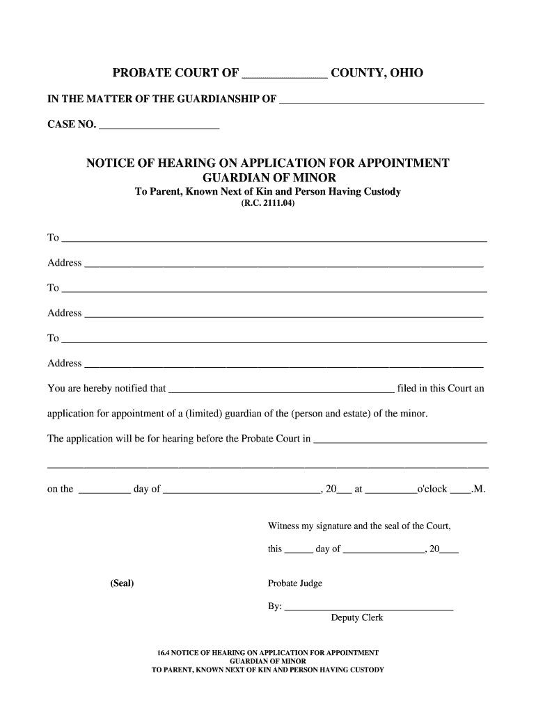 Get the free NOTICE OF HEARING ON APPLICATION FOR APPOINTMENT GUARDIAN OF MINOR - supremecourt ohio