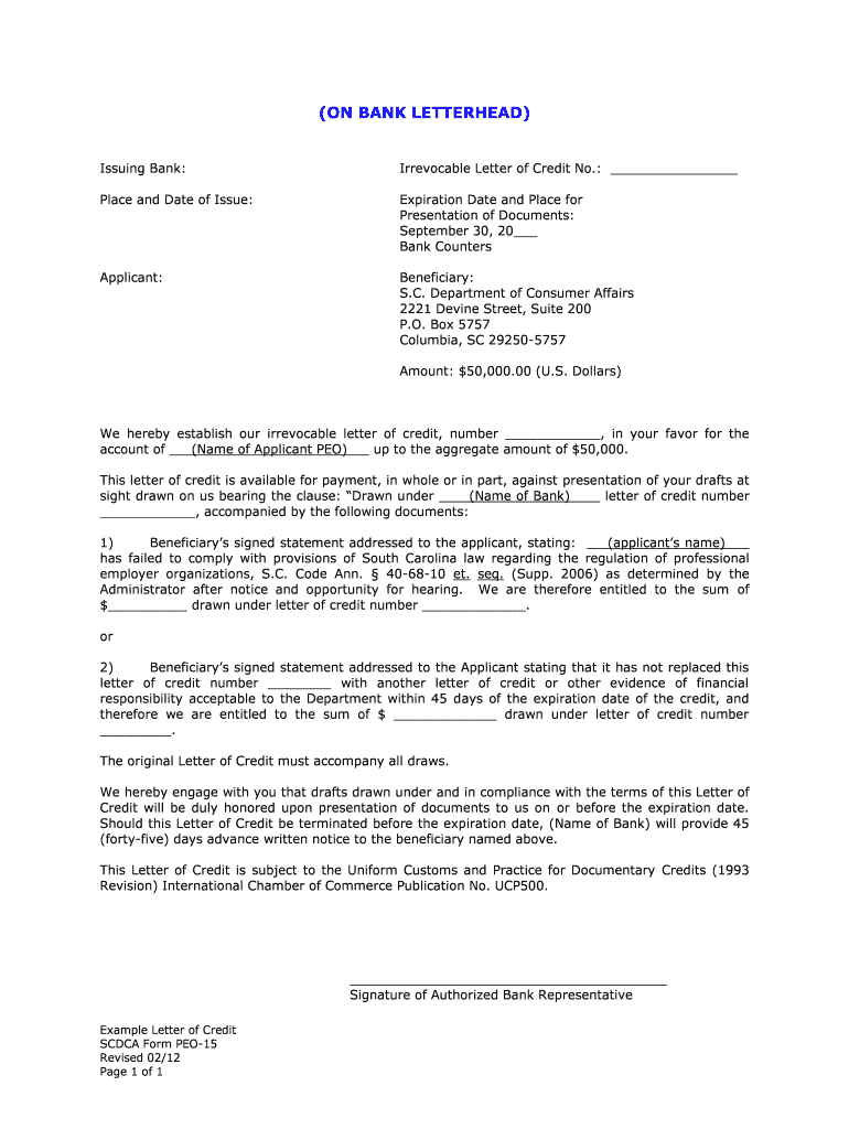 Get the free Irrevocable Letter of Credit - consumer sc