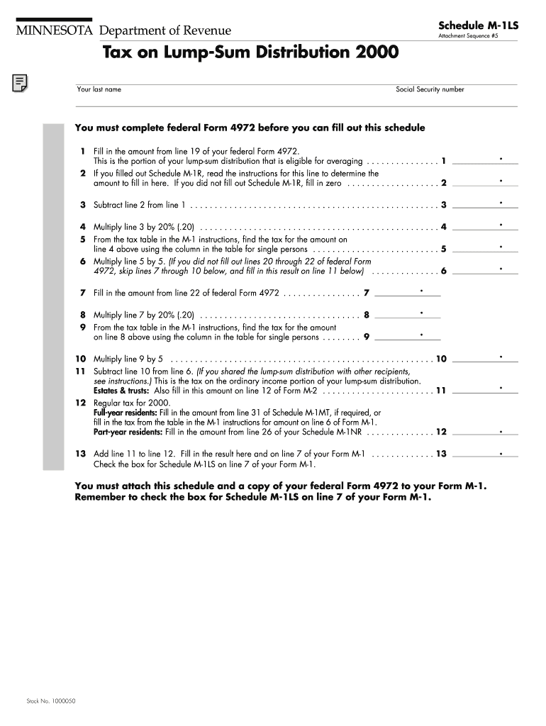 Individuals who have received lump-sum distributions in 2000 and need to report those amounts for state taxation are required to file the Minnesota Schedule M-1LS. Documentation needed for this process includes federal Form 4972, which must be completed before filling out the Minnesota form. This requirement ensures that those obligated to file are adequately informed of the necessary steps and documentation involved.