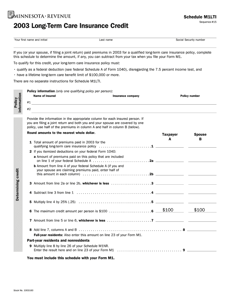 The 2003 Long-Term Care Insurance Credit Form is a tax credit form used by taxpayers in the United States to determine their eligible credit amount for long-term care insurance when filing Form M1.