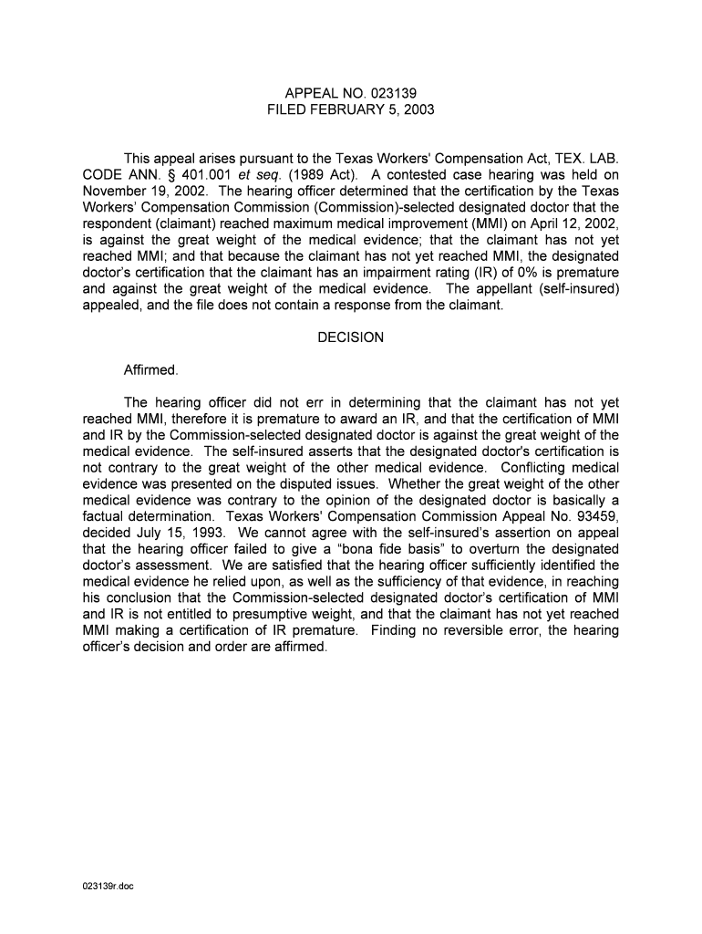 Get the free Appeal Decision on Workers' Compensation Case - tdi texas