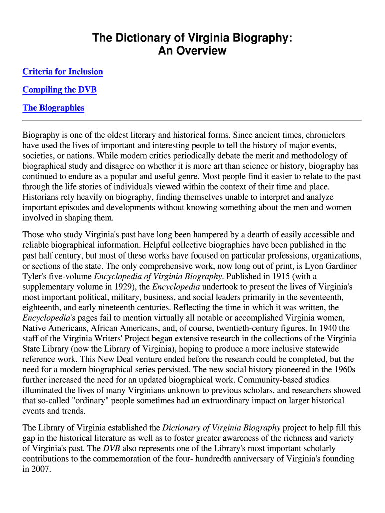 How to fill out Dictionary of Virginia Biography