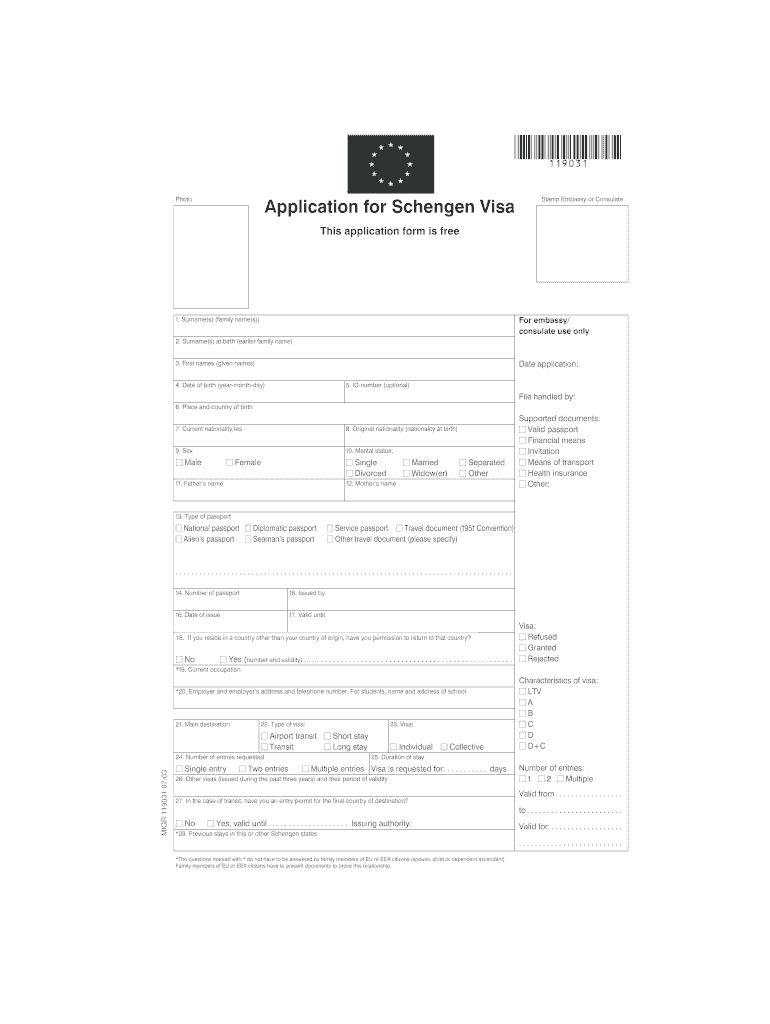 Get the free Schengen Visa Application Form