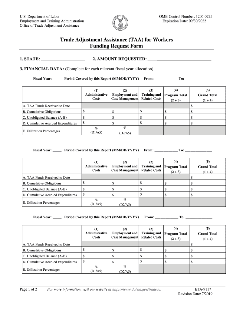 The Trade Adjustment Assistance (TAA) Funding Request Form, also known as the ETA-9117 form, serves as a critical tool for individuals and organizations seeking funding for trade adjustment assistance programs. This form is designed to streamline the process of requesting financial support essential for affected workers and businesses in adapting to economic changes.