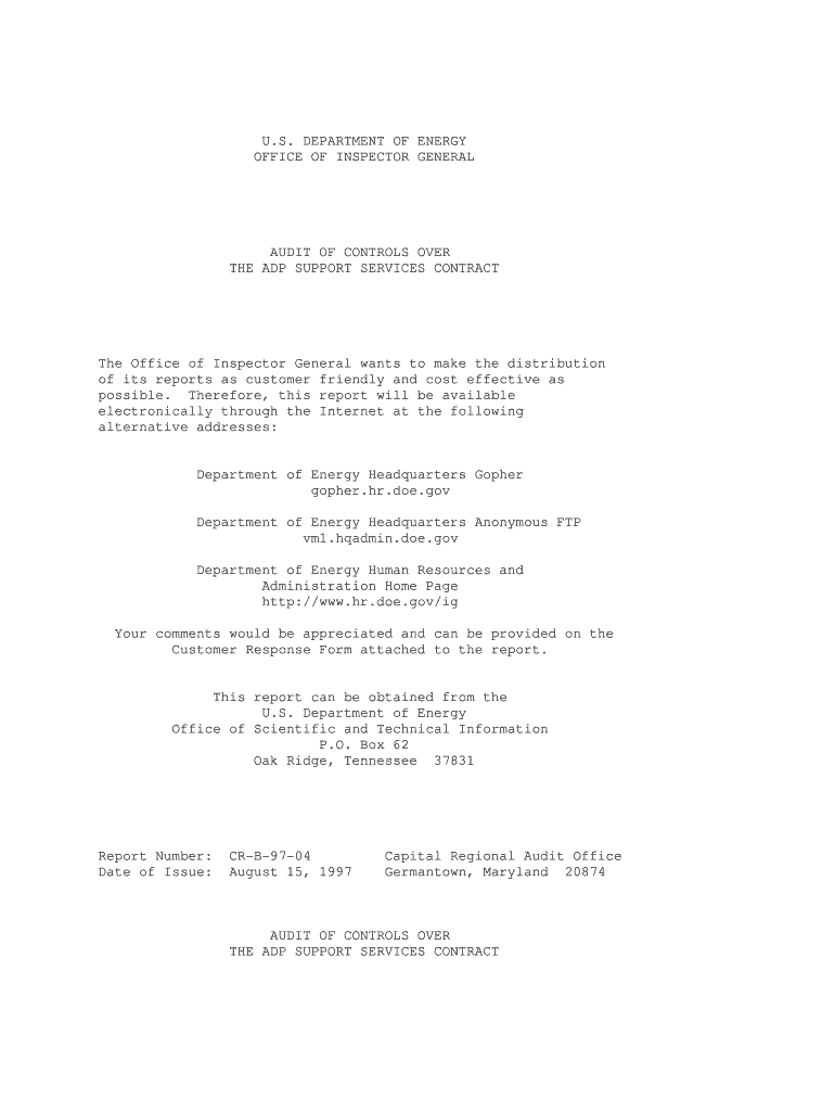 Get the free Audit of Controls Over the ADP Support Services Contract - energy