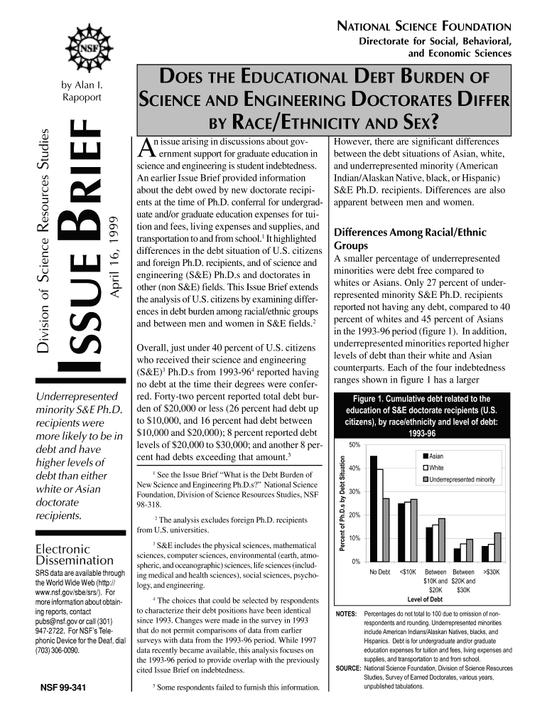NATIONAL SCIENCE FOUNDATION Directorate for Social, Behavioral, and Economic Sciences by Alan I. Rapport ISSUE BRIEF Science Resources Studies DOES THE EDUCATIONAL DEBT BURDEN OF SCIENCE AND ENGINEERING
