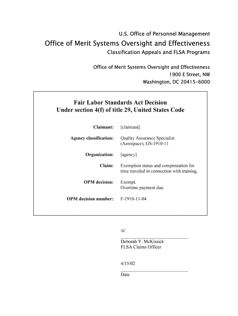 Apr 15, 2002 ... Management (OPM) received a Fair Labor Standards Act (FLEA) claim from ... In reaching our FLEA decision, we have carefully reviewed all ...