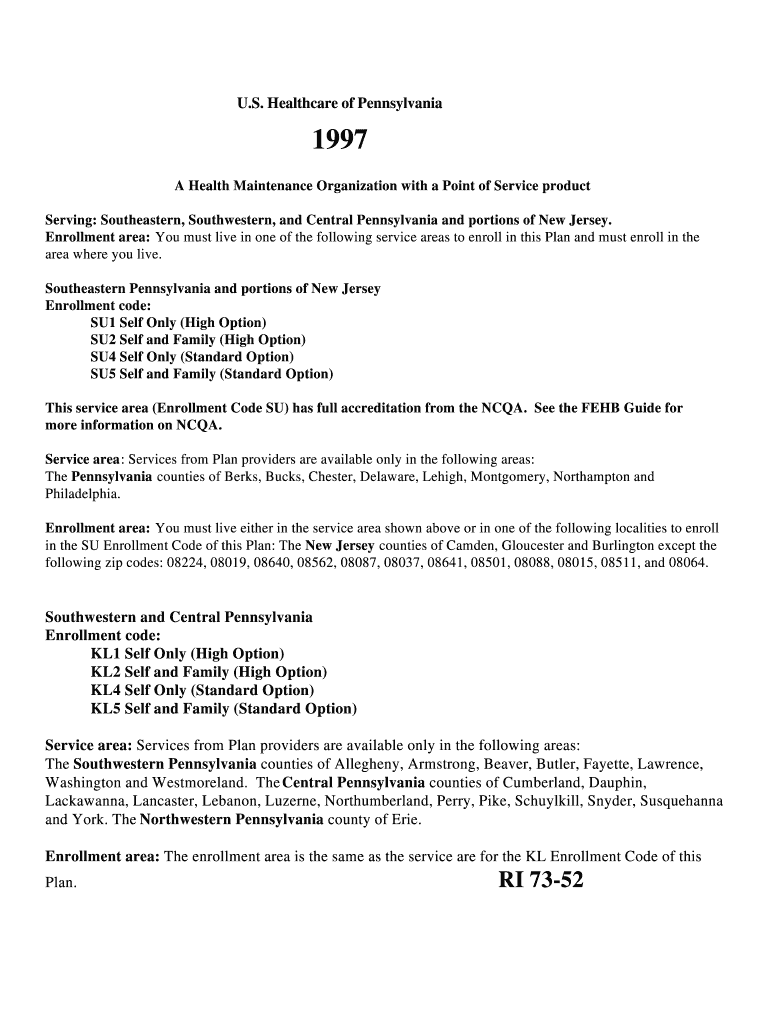 This document provides a comprehensive overview of the U.S. Healthcare of Pennsylvania health plan, detailing enrollment requirements, benefits, limitations, and procedures for members under the Federal