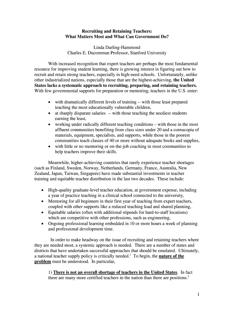 Get the free 1 Recruiting and Retaining Teachers: What Matters Most and What ... - help senate