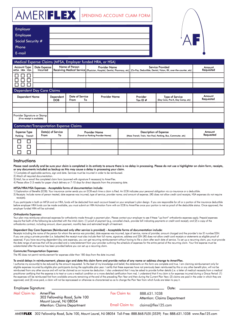 Get the free AmeriFlex Spending Account Claim Form