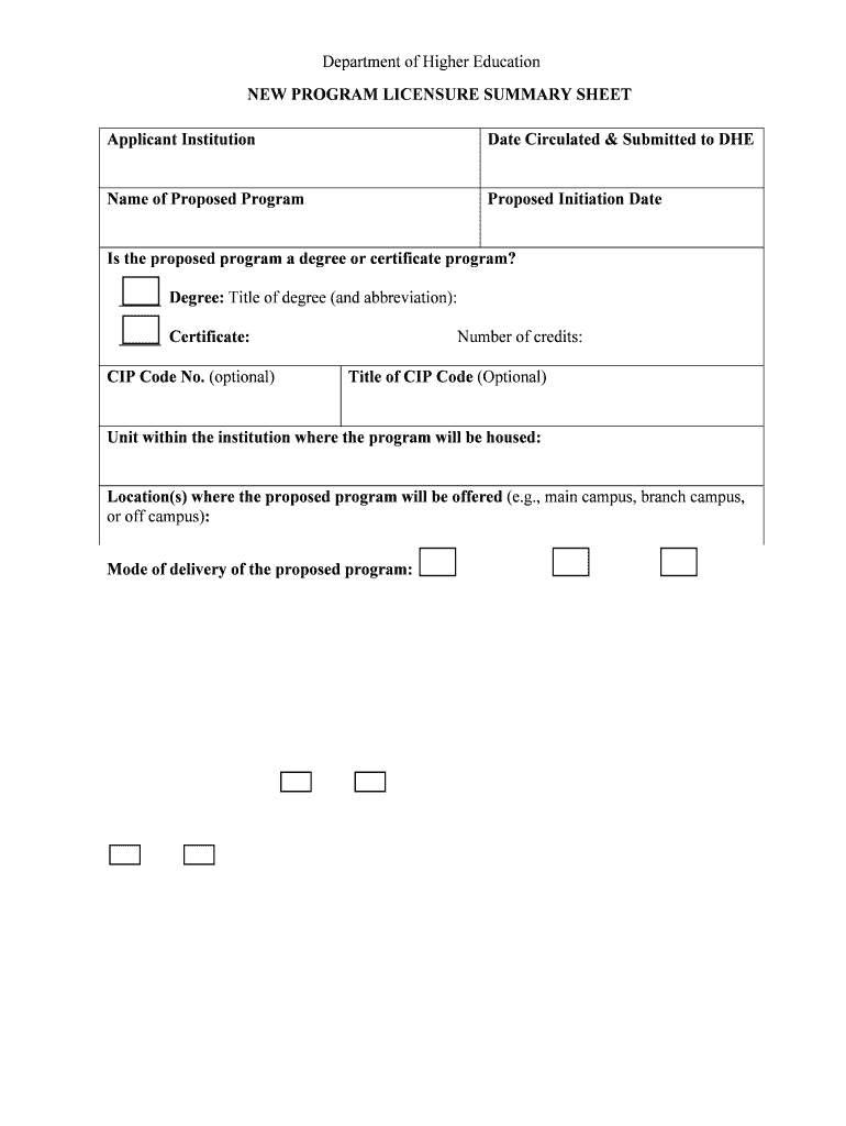 How to fill out NEW PROGRAM LICENSURE SUMMARY SHEET