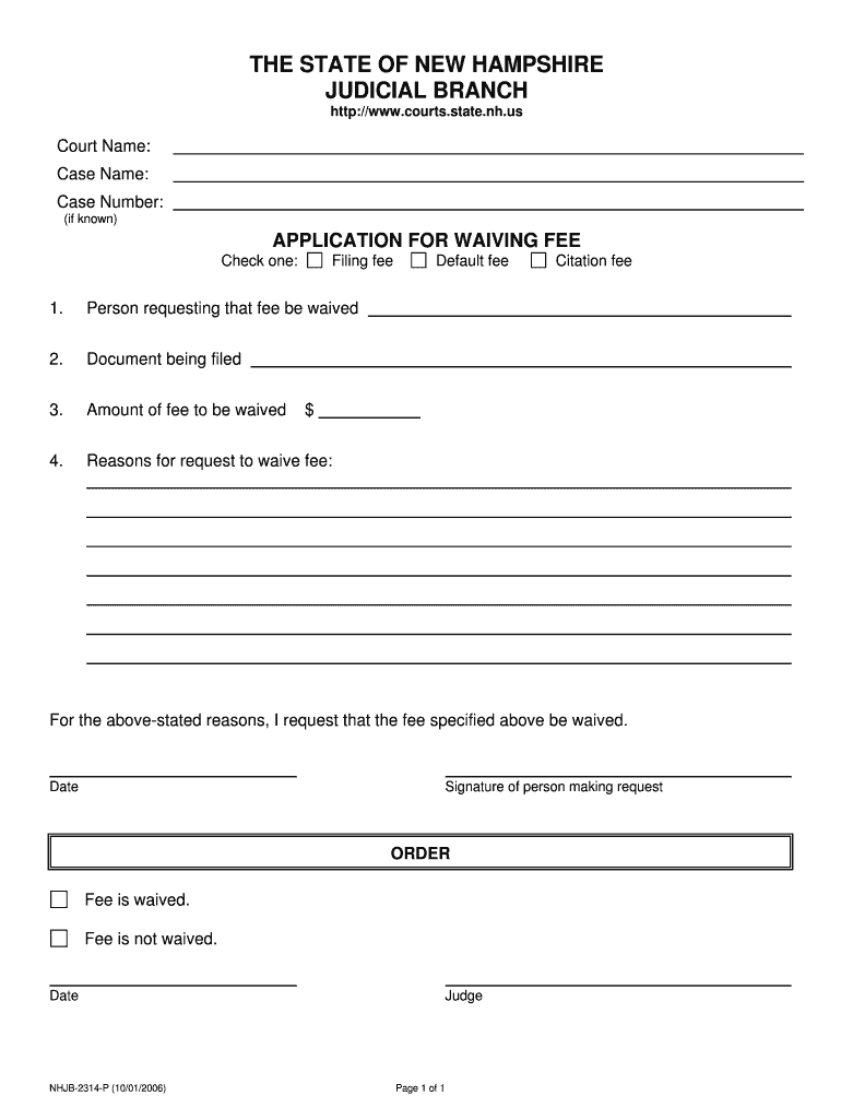 Get the free APPLICATION FOR WAIVING FEE - courts state nh