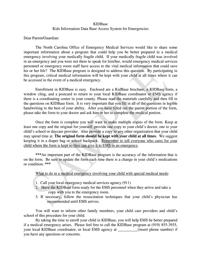 By utilizing the kidbase medical form, caregivers can effectively communicate the individual needs of their medically fragile child form with emergency medical services, thereby enhancing the level of care provided in crisis situations.