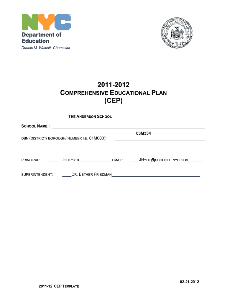 The Comprehensive Educational Plan Template (CEP) serves as a vital tool for schools in New York, enabling them to establish annual goals and action plans. This template is essential in outlining a school’s strategic objectives and creating a detailed framework for educational improvement. Collaboration with the School Leadership Team (SLT) is crucial for developing an effective CEP that reflects the school's vision and goals.