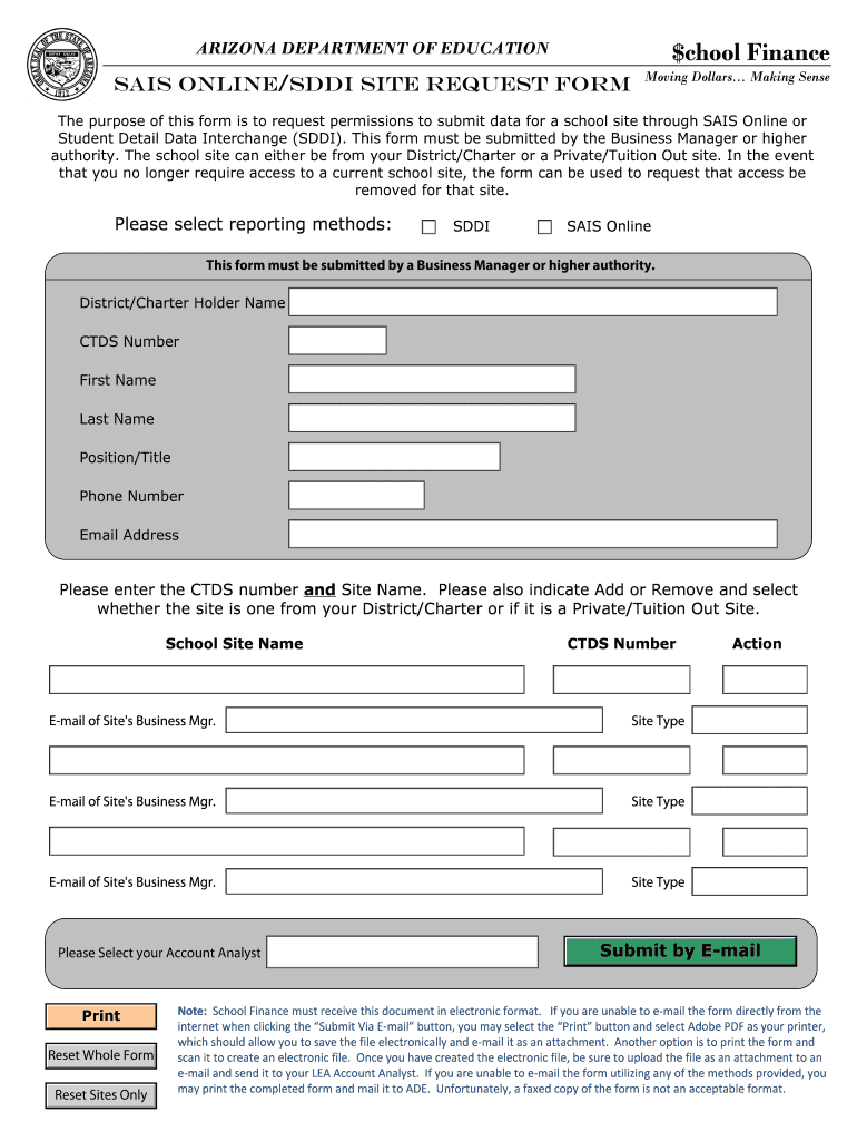 Submitting the Arizona SAIS Online/SDDI Request Form can be done through various methods: