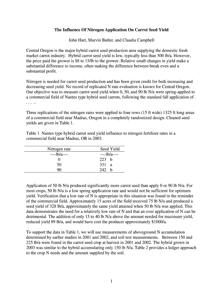Get the free 1 The Influence Of Nitrogen Application On Carrot - Oregon State ... - oregonstate