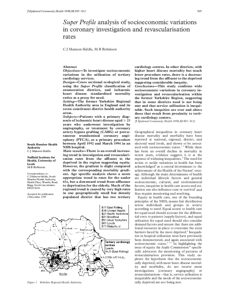 J Epidemic Community Health 1998;52:507512507Super Profile analysis of socioeconomic variations