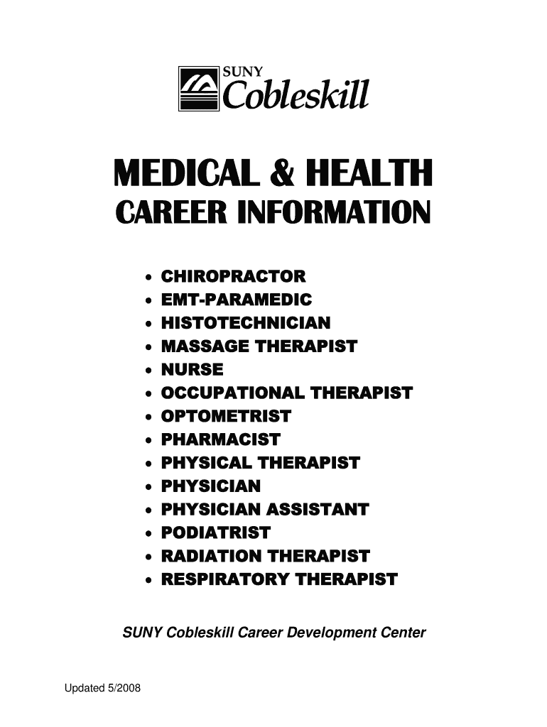 MEDICAL & HEALTH CAREER INFORMATION CHIROPRACTOR PARAMEDIC HISTOTECHNICIAN MASSAGE THERAPIST NURSE OCCUPATIONAL THERAPIST OPTOMETRIST PHARMACIST PHYSICAL THERAPIST PHYSICIAN ASSISTANT PODIATRIST RADIATION