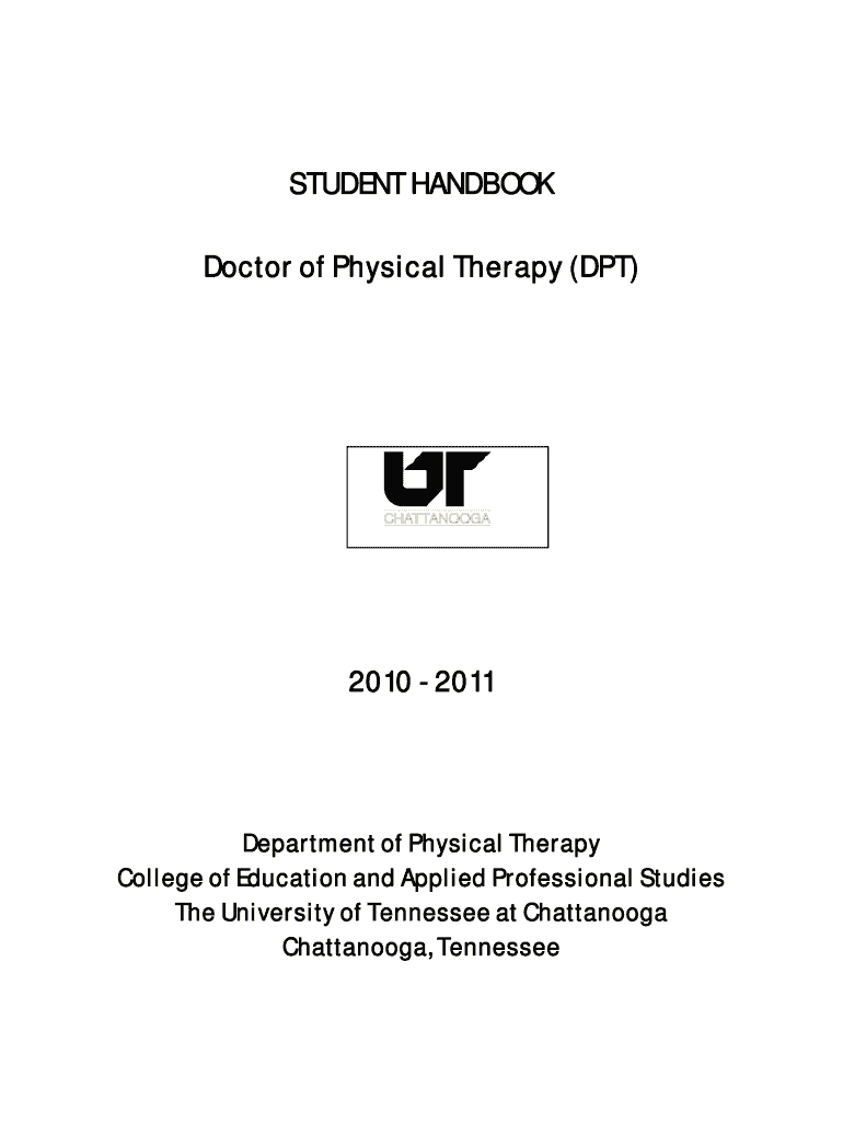 STUDENT HANDBOOK Doctor of Physical Therapy (DPT) 2010 2011 Department of Physical Therapy College of Education and Applied Professional Studies The University of Tennessee at Chattanooga, Tennessee