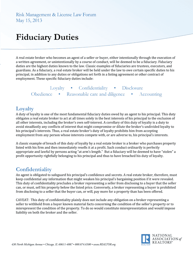 Get the free NAR Fiduciary Duties