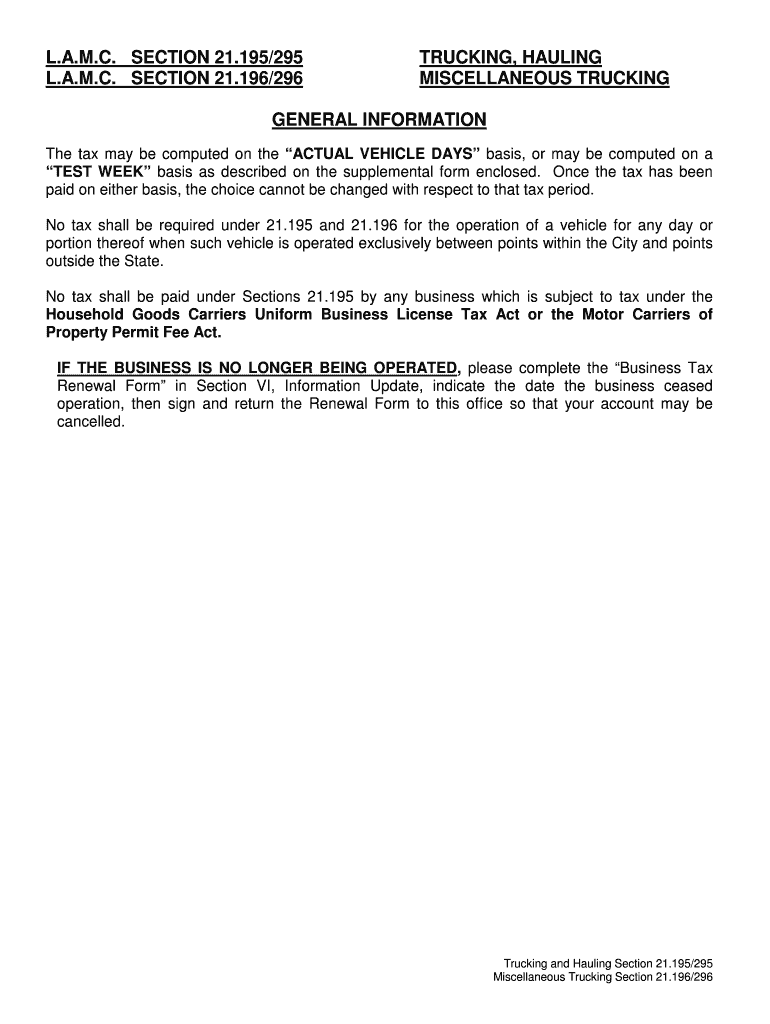 The Trucking and Hauling Tax Worksheet is a crucial form for businesses in California, specifically designed to aid in the calculation and reporting of trucking and hauling taxes. This form serves as a primary tool for businesses to compute their tax liabilities based on either the actual vehicle days used or test week calculations, ensuring compliance with relevant regulations such as L.A.M.C. 21.195/295.