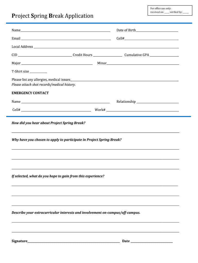 Edit your project spring break application form online