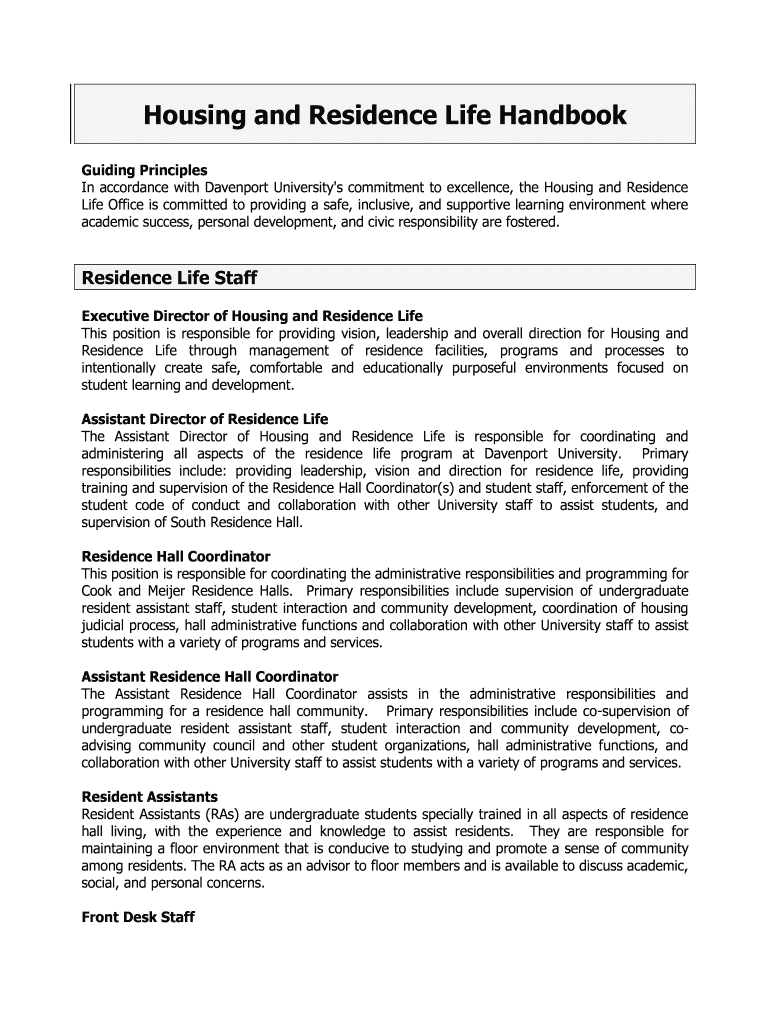 Get the free Housing and Residence Life Handbook - davenport