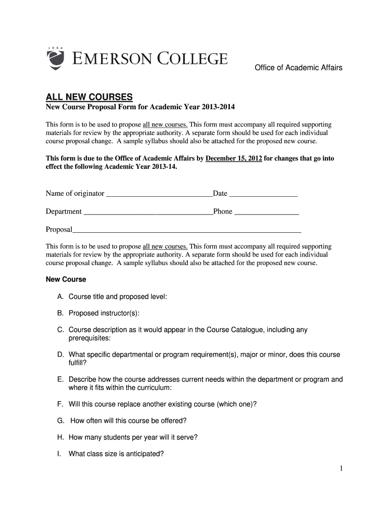 Get the free New Course Proposal Form for Academic Year 2013-2014 - emerson