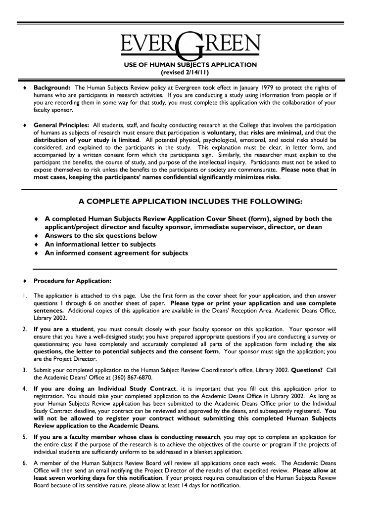 Get the free USE OF HUMAN SUBJECTS APPLICATION - evergreen