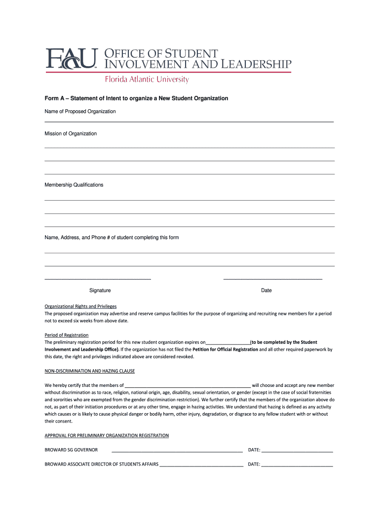 Get the free Procedures for the Formation of New Student Organizations - fau