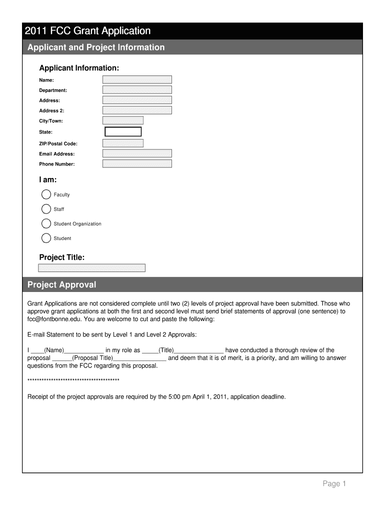 To fill out the 2011 FCC Grant Application, applicants should carefully review the application guidelines, complete all required sections, provide accurate financial information, describe the project and its objectives, and submit any necessary supporting documents before the deadline.