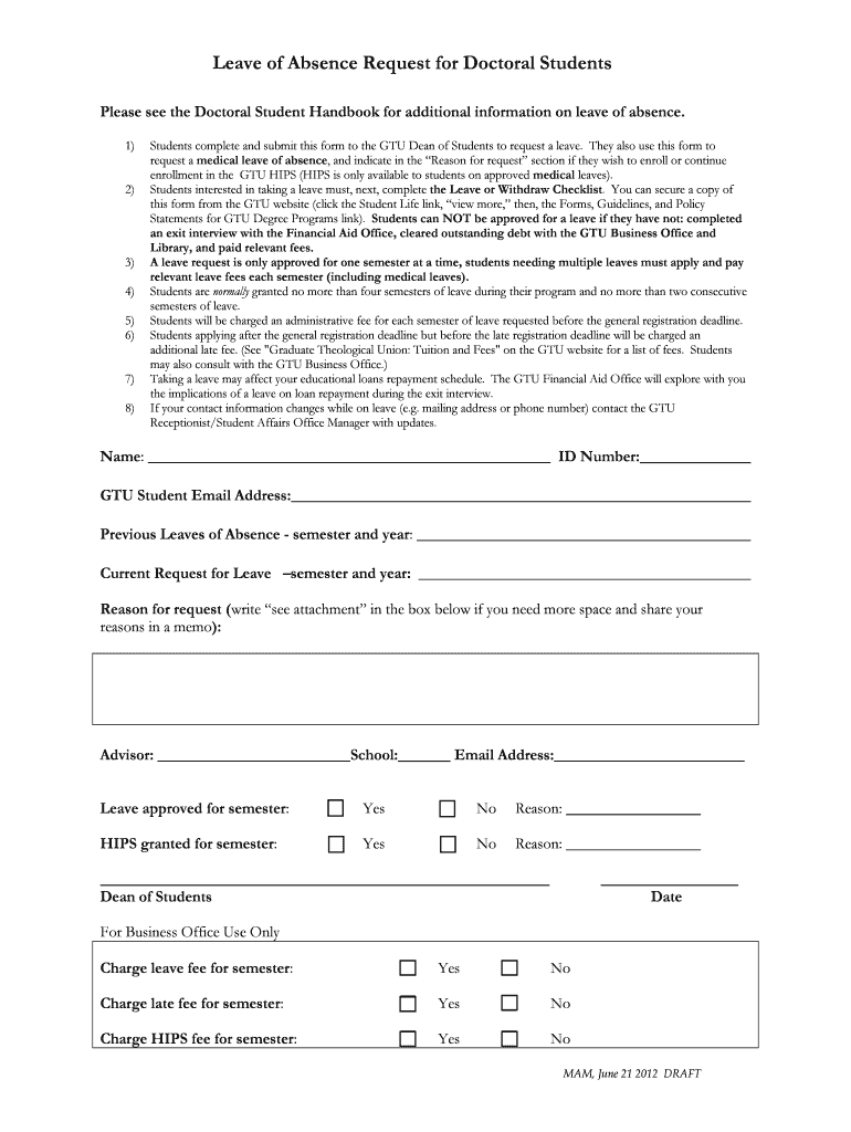 Get the free Leave of Absence Request for Doctoral Students - gtu