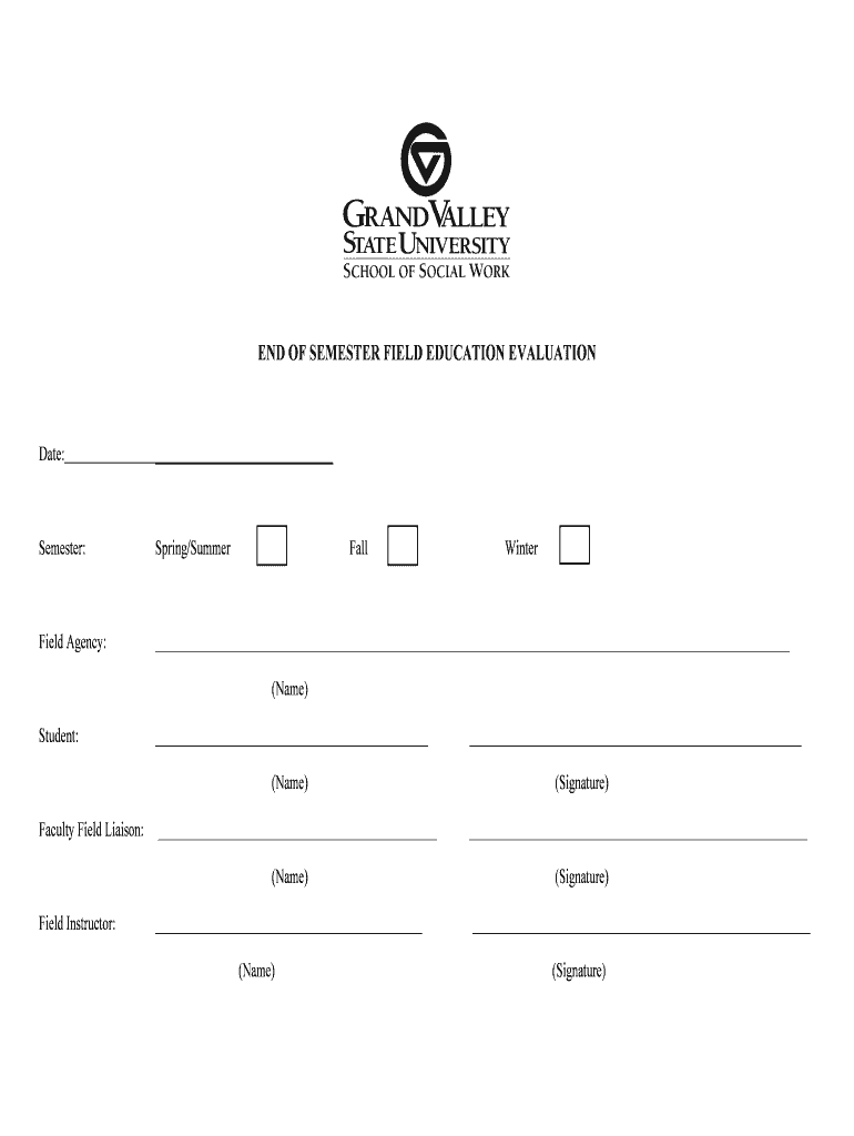 Get the free End of Semester Field Education Evaluation - gvsu