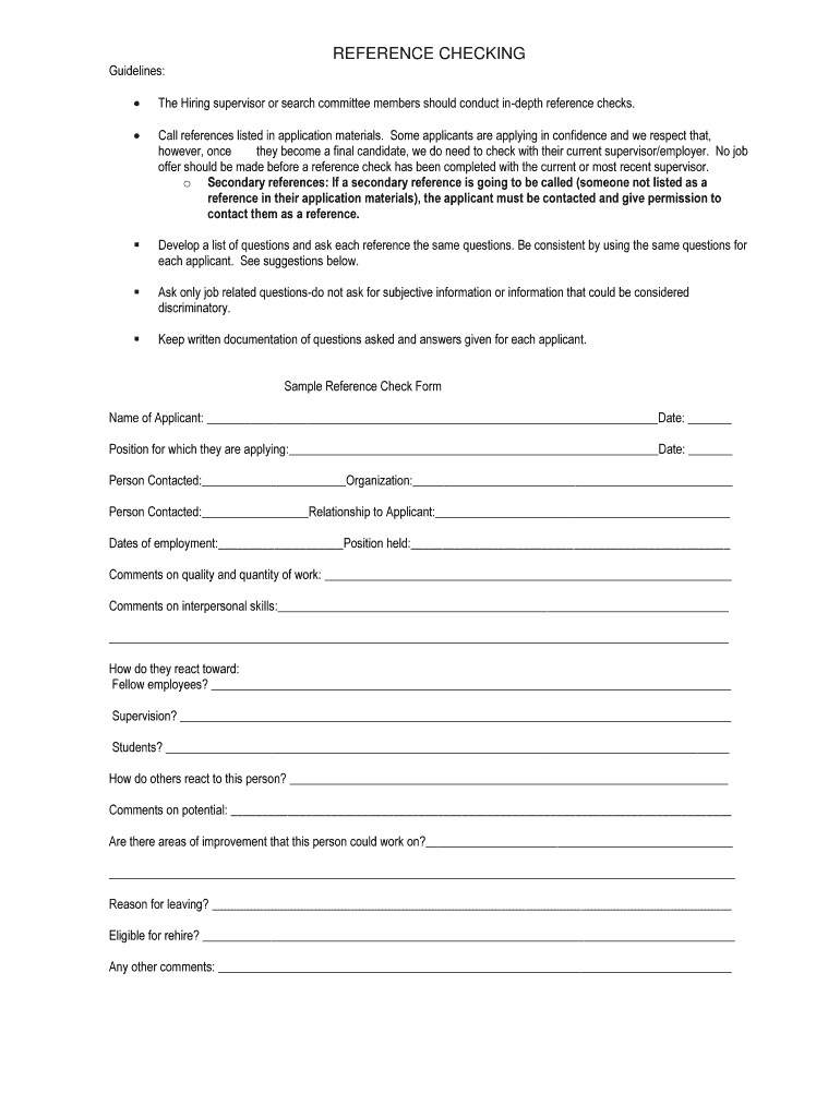 How to fill out reference checking - gvsu