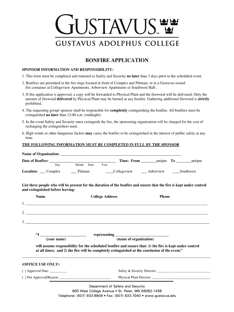 Bonfire Application - Gustavus is not the form you're looking for?Search for another form here.