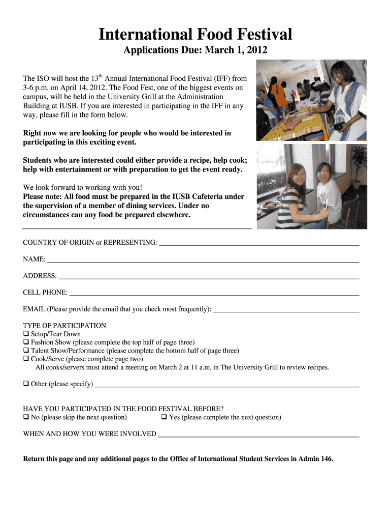 Get the free International Food Festival Participant Application - iusb
