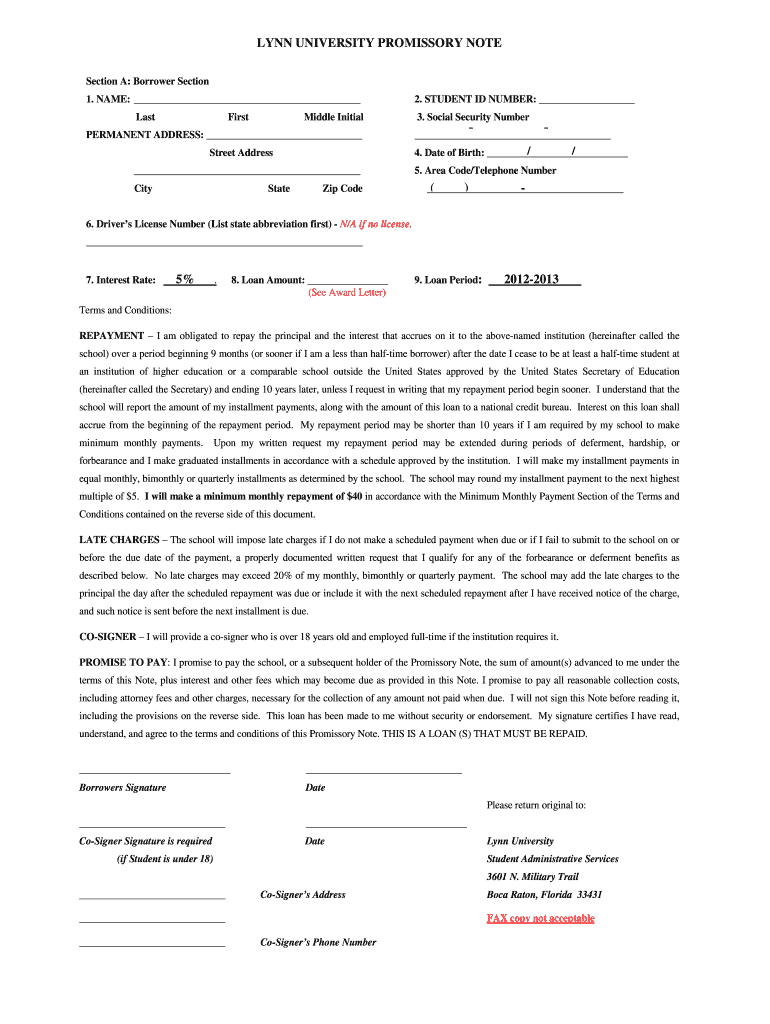 How to fill out lynn university promissory note