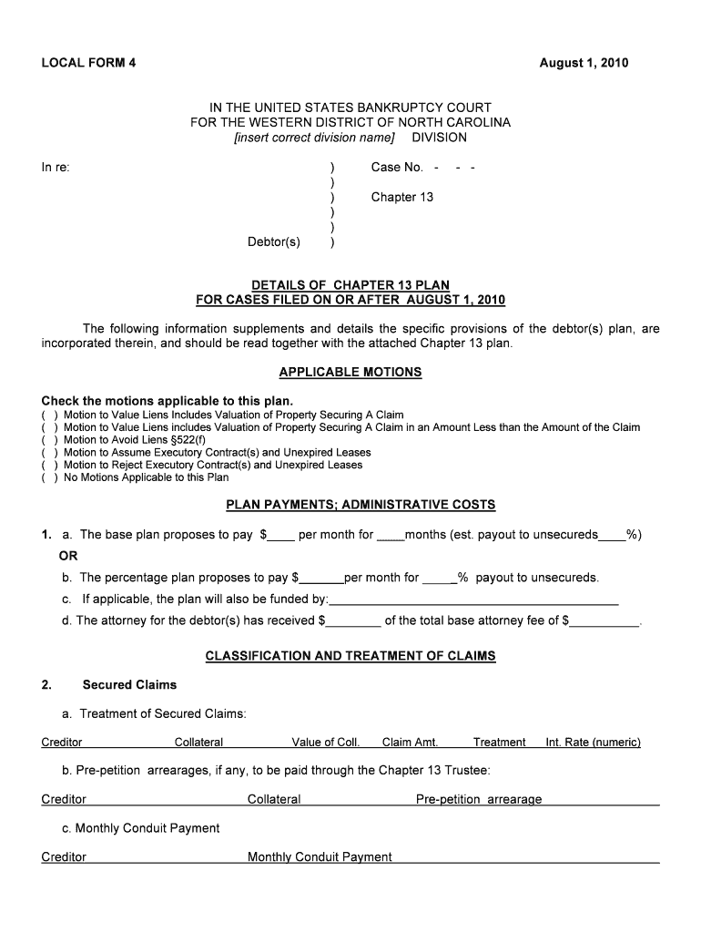 Get the free Chapter 13 Plan Details Form