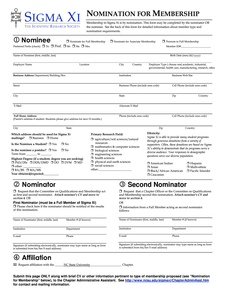 Get the free NOMINATION FOR MEMBERSHIP Nominee Nominator ... - ncsu