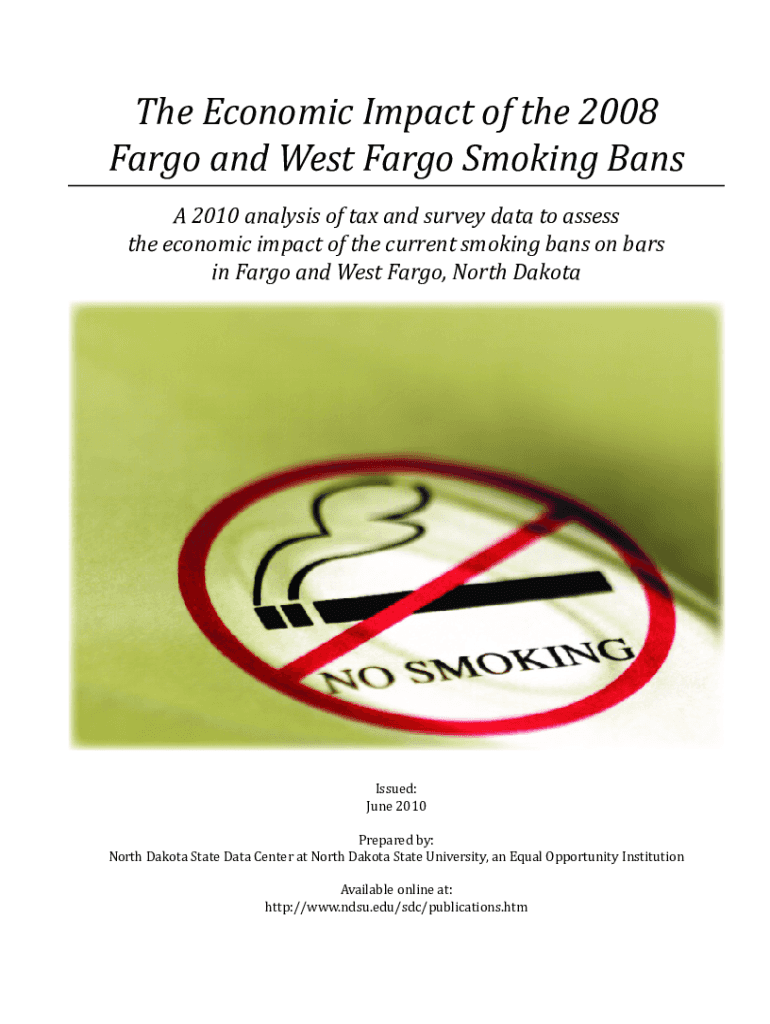 The Economic Impact of the 2008 Fargo and West Fargo Smoking Bans A 2010 analysis of tax and survey data to assess the economic impact of the current smoking bans on bars in Fargo and West Fargo,