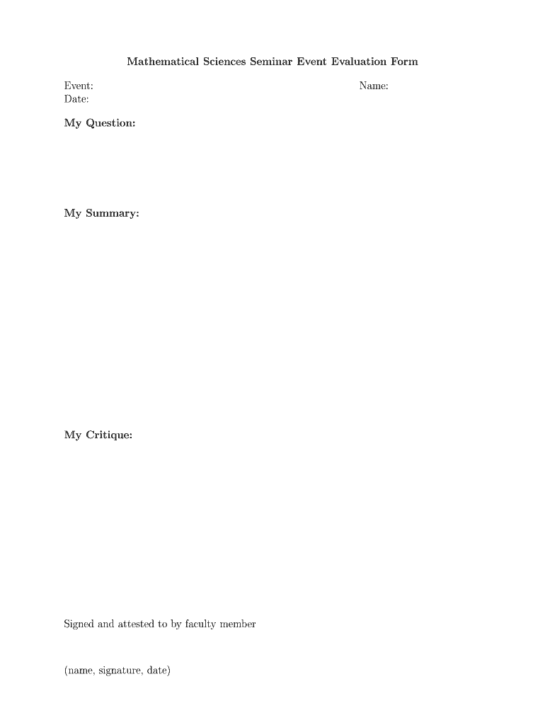 Participants and attendees of the Mathematical Sciences seminars are typically required to fill out the evaluation form to provide feedback.