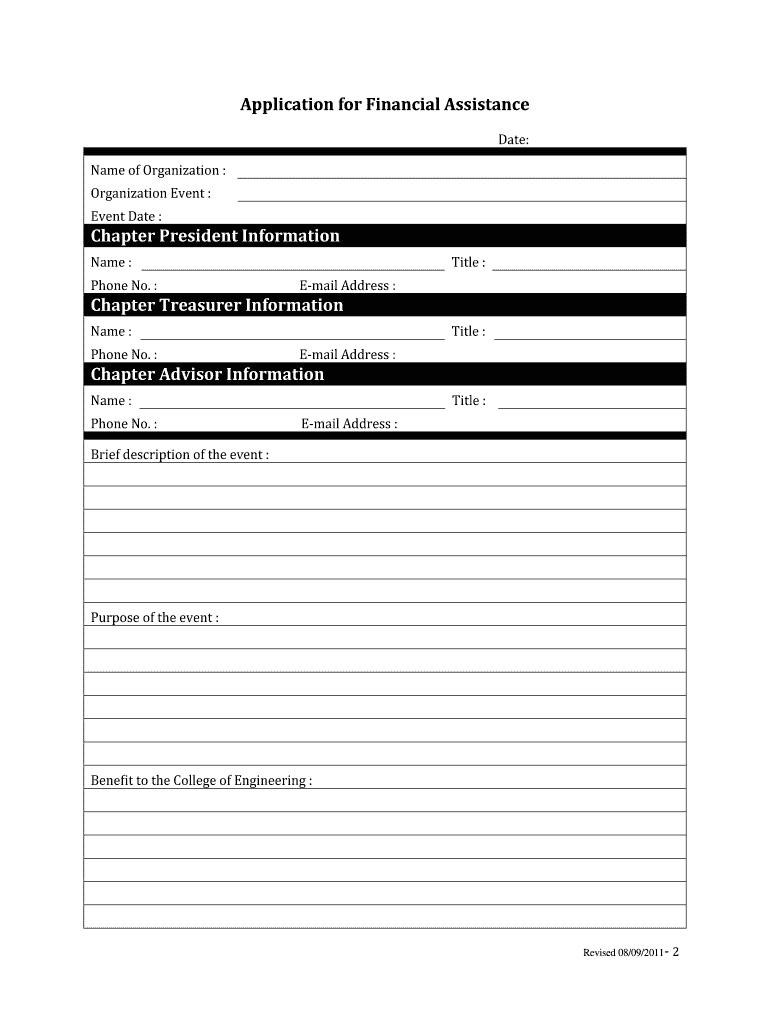 Obtain the Financial Assistance Application: Download or request the application form from the relevant organization or website.