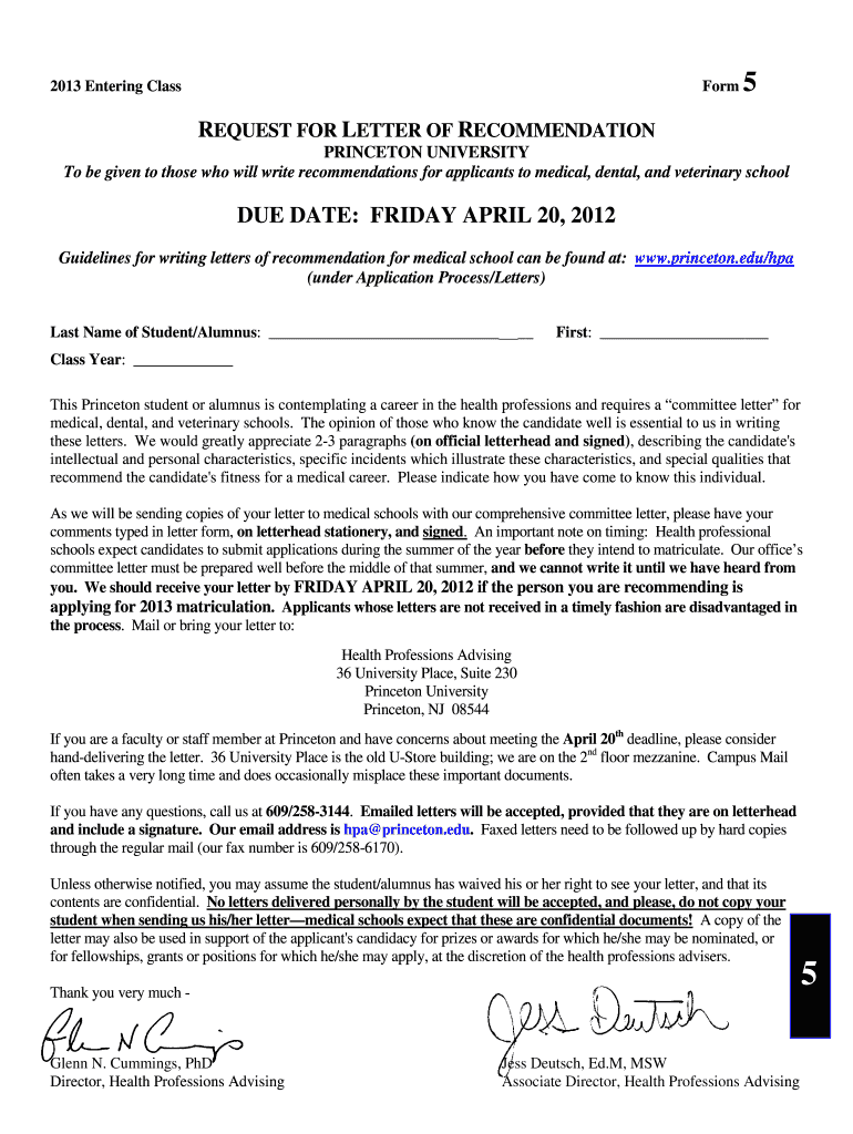 Get the free REQUEST FOR LETTER OF RECOMMENDATION - princeton