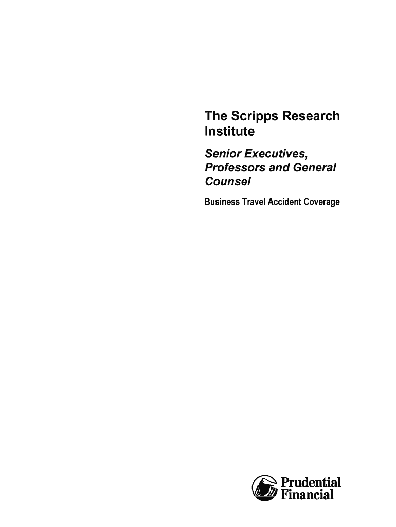 This booklet outlines the benefits and coverage details for Business Travel Accident Insurance provided for eligible employees of The Scripps Research Institute.