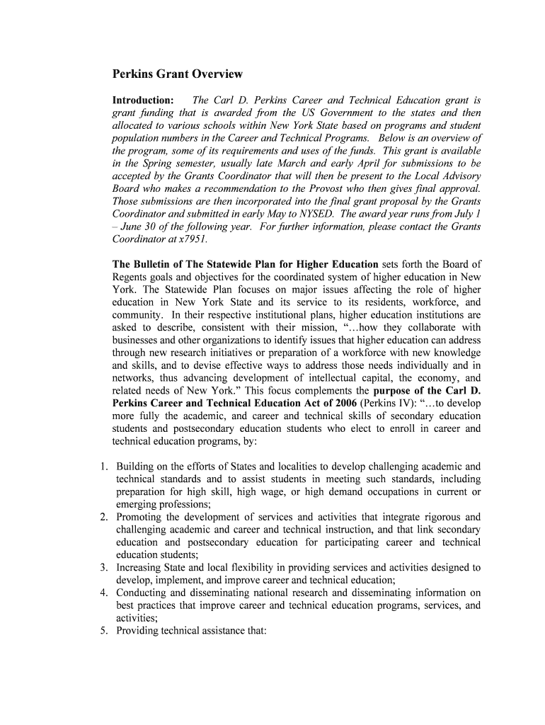 Educational institutions, such as colleges and vocational schools, that receive Perkins grant funds are required to file perkins grant overview.