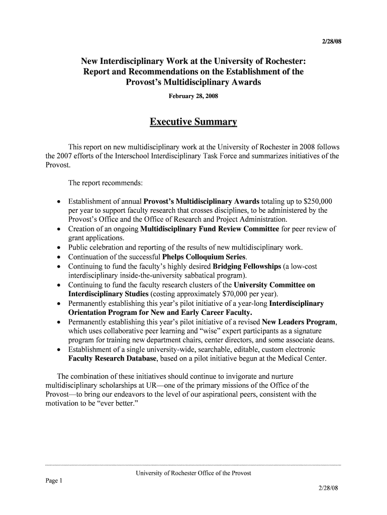 How to fill out New Interdisciplinary Work at the University of Rochester: Report and Recommendations on the Establishment of the Provost’s Multidisciplinary Awards