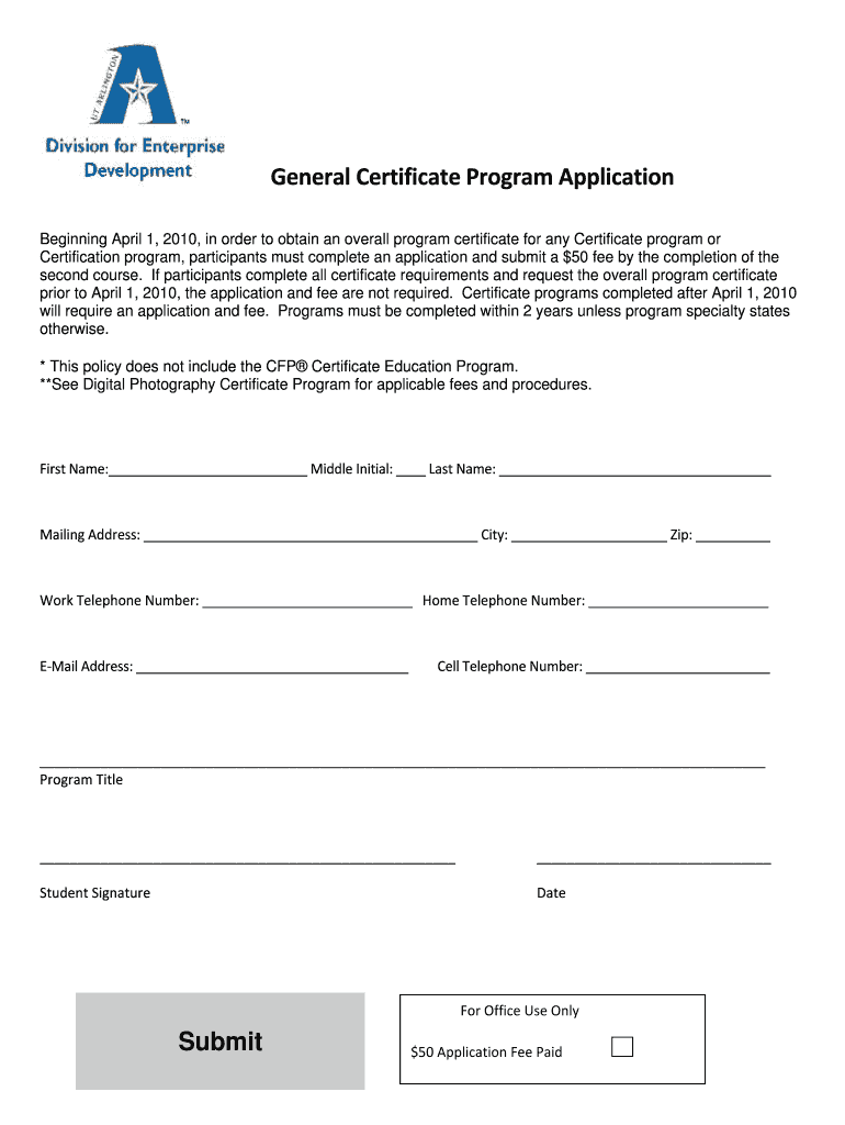 Get the free General Certificate Program Application