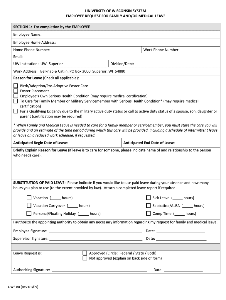 Get the free EMPLOYEE REQUEST FOR FAMILY AND/OR MEDICAL LEAVE - uwsuper
